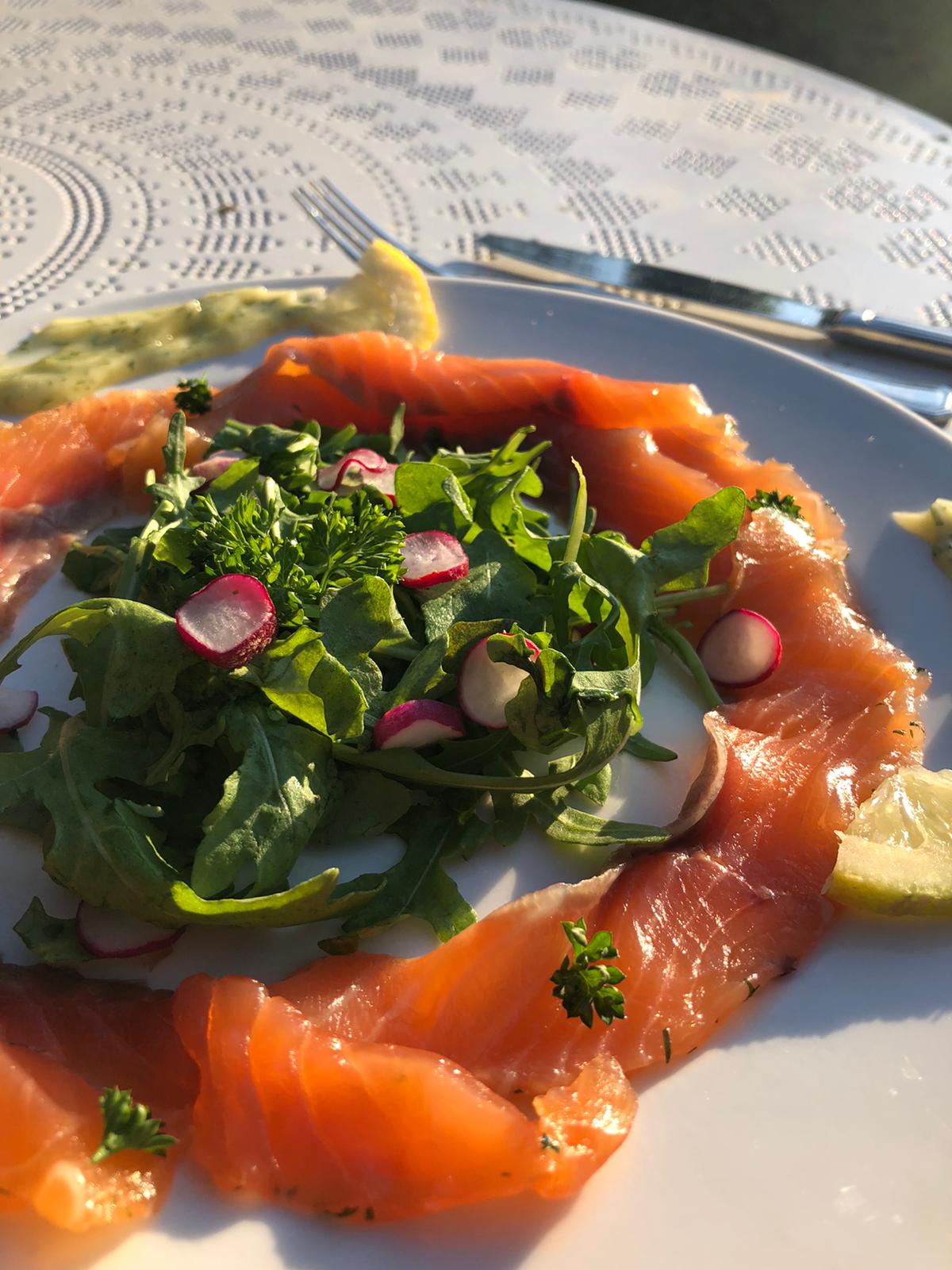 - Pavé de saumon sauce à l’aneth, jardinière de légumes