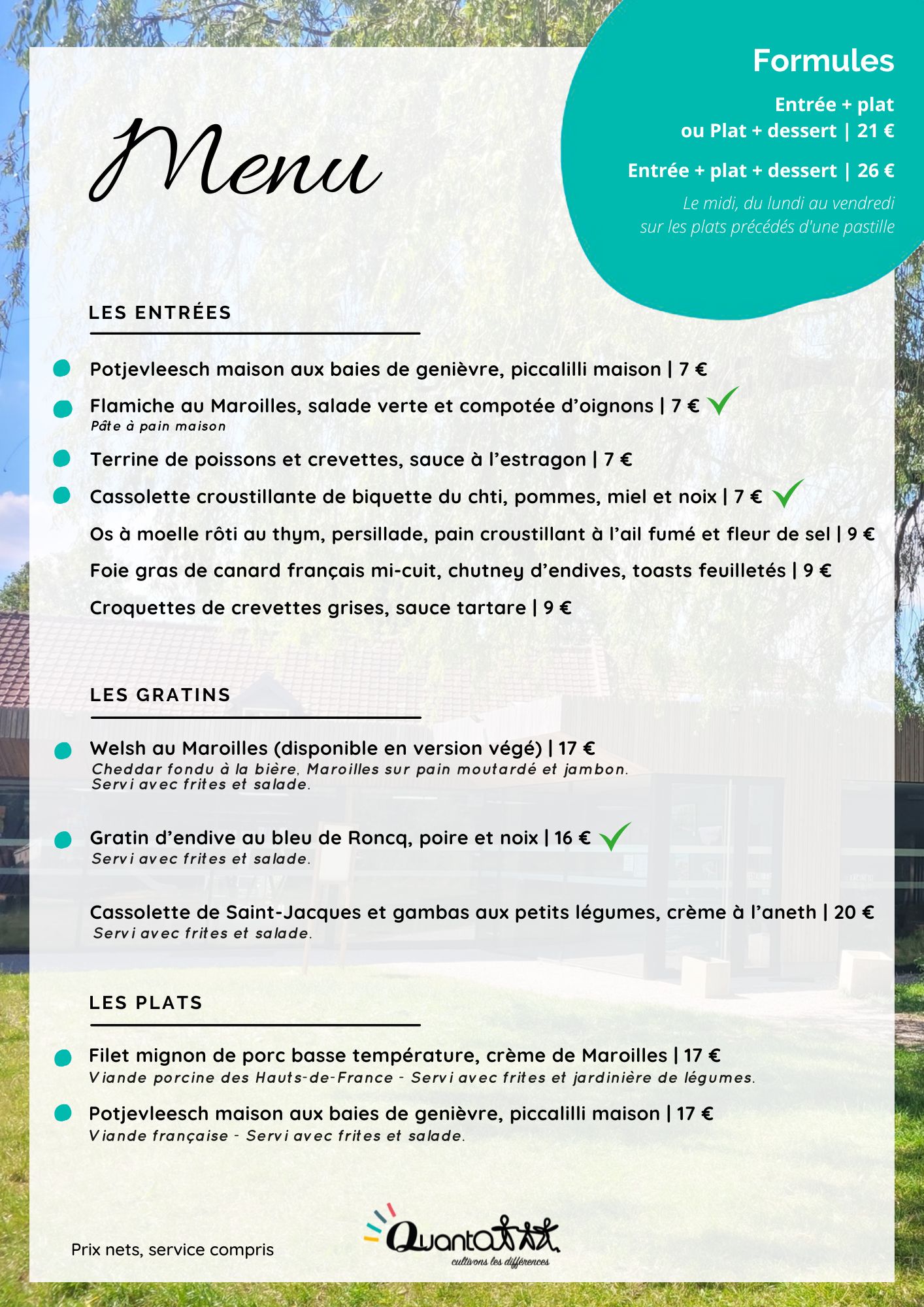 Notre cuisine de saison est élaborée à partir de produits frais et nous nous employons chaque jour à ravir vos papilles !