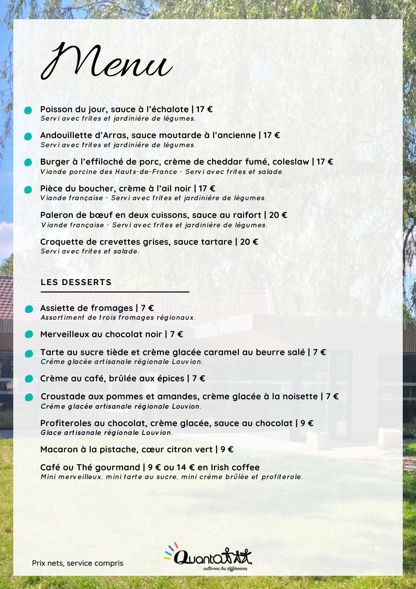 L’équipe de Quanta vous souhaite de passer un agréable moment en notre compagnie dans notre restaurant atypique !